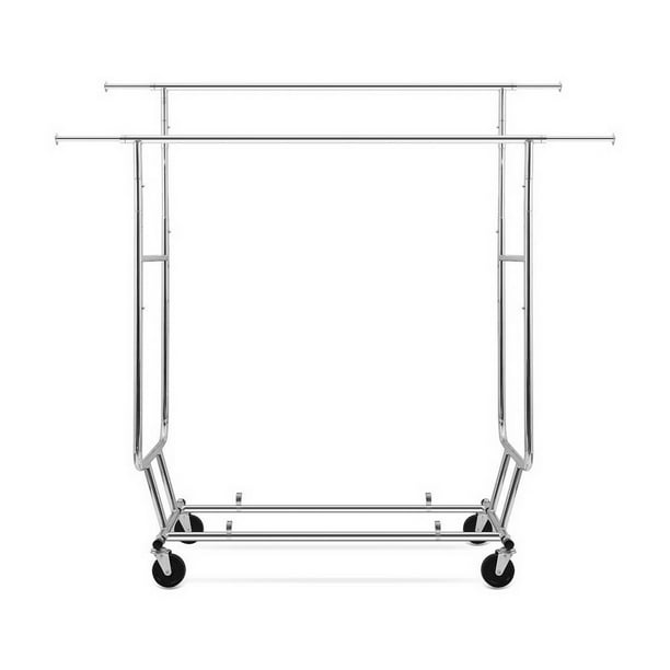 With an adjustable height, you can configure this clothing rack to your clothing's dimensions to secure safe hanging (clothes won't touch the ground). This second bar makes the rack ideal for storing children's clothes or other shorter items. 56 tall when in the down position. Our commercial grade double bar garment rolling rack is ideal for holding double the amount of clothes and hanging a variety of garments with different lengths. Due to size or weight restrictions this item cannot be shipped via fedex package delivery. Only garment racks heavy duty rolling racks are made with two solid single bar top rails and solid single piece base. Household essentials® stainless steel adjustable double bar garment rack. Measures 20 l x 48 w and varies in height by 48 to 72. Use our double bar rolling rack to easily and beautifully transport and display clothing in your retail store. With 4 wheels which make it easy rolling from room to room to get your clothes at hand.2 castors can be locked to prevent sliding when you hang clothes. The hanger with 4 universal pp wheels can roll smoothly on any floor. (see pictures) 175 racks available. The two horizontal bars include a total hanging space of 8.6 ft.