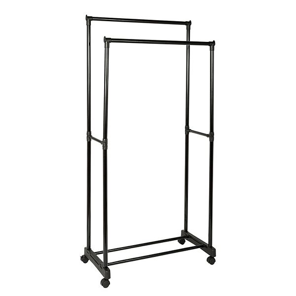 Each bar is adjustable in height from 58 to 66.5 h. Use our double bar rolling rack to easily and beautifully transport and display clothing in your retail store. The rack features double bars to organize an ample amount of. This second bar makes the rack ideal for storing children's clothes or other shorter items. H) whether you are running a fashion show or whether you are running a fashion show or need to bring your wardrobe to your dorm room, this double garment rack makes it easy to transfer your clothes wherever you desire.
